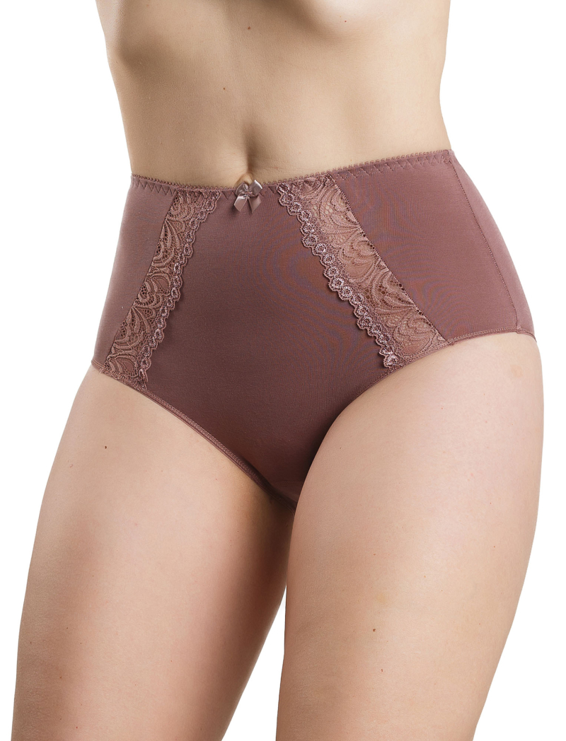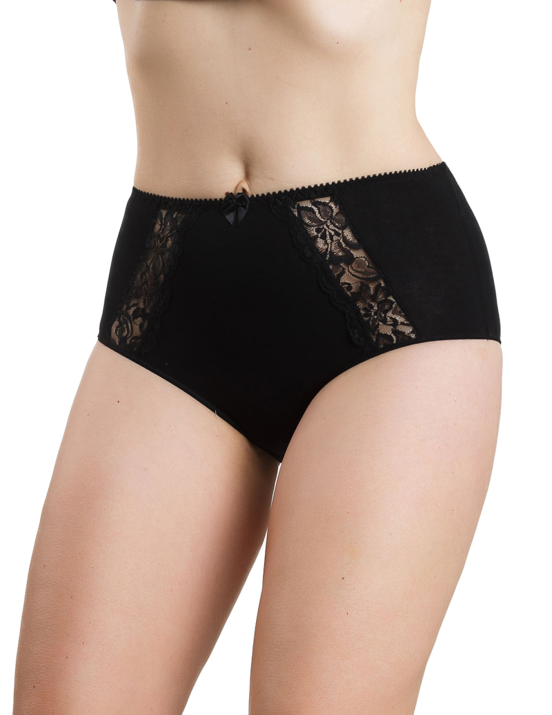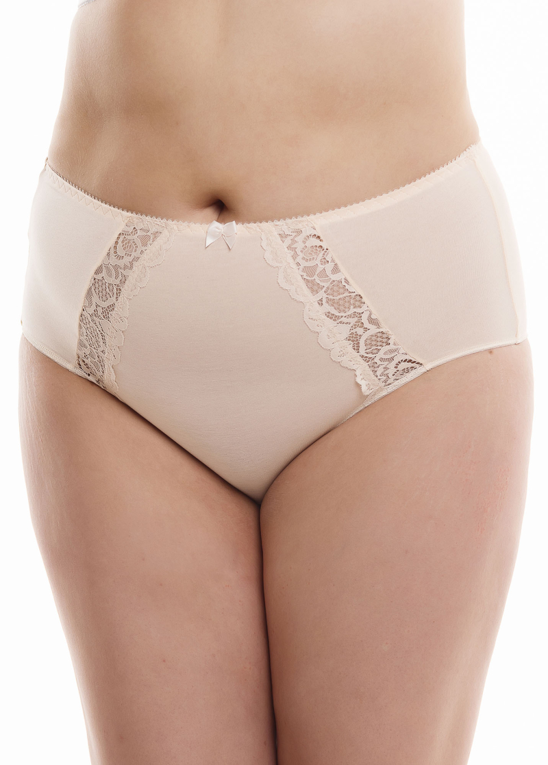 Трусы – слипы с высокой посадкой из хлопкового трикотажа с лайкрой и эластичного кружева.